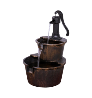 Alpine Corporation – Outdoor Rustic 2-Tiered Barrel and Pump Water Fountain – Bronze Finish, Relaxing Water Flow, Ideal for Garden, Patio, & Yard Décor, 27″H